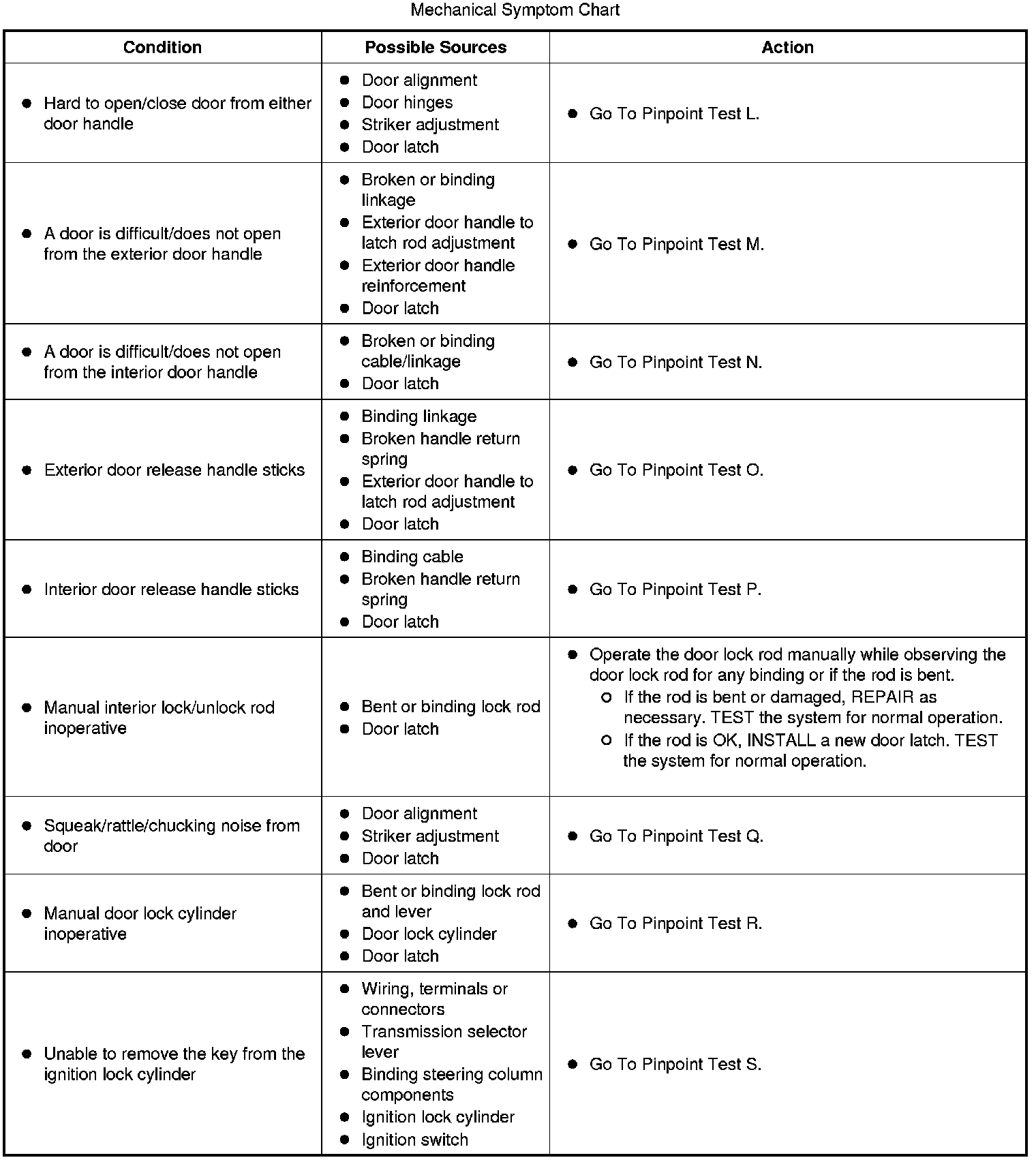 Mechanical Symptom Chart