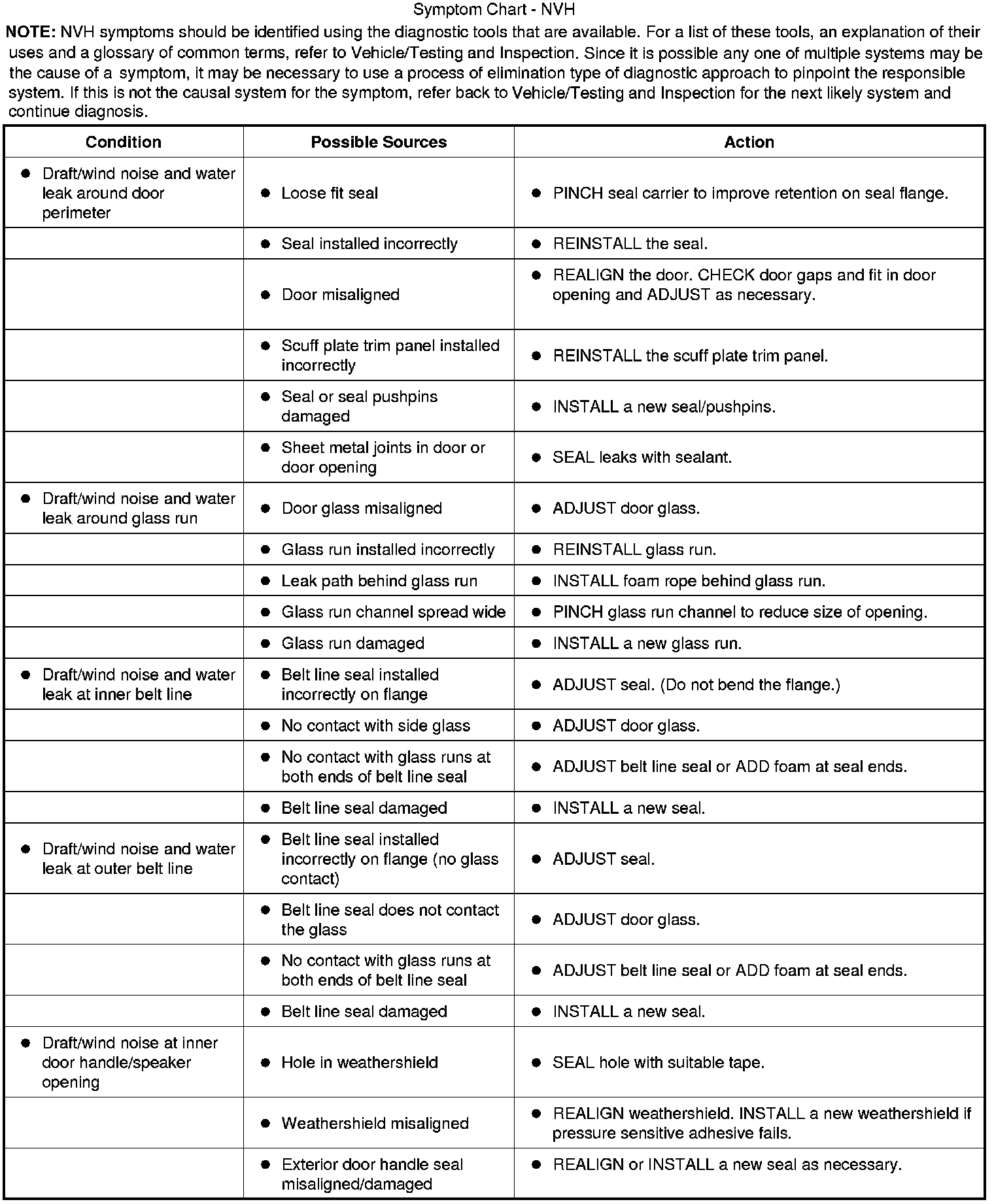 Symptom Chart - NVH