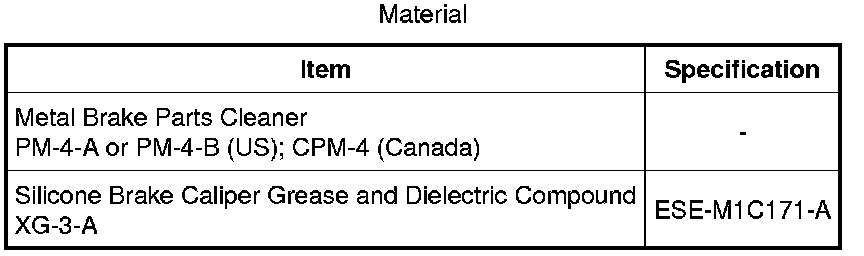 - If the thickness of the friction material is less than the specified thickness, install new brake pads.