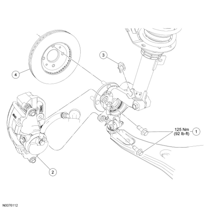 - To install, tighten new bolts to 125 Nm (92 lb-ft).