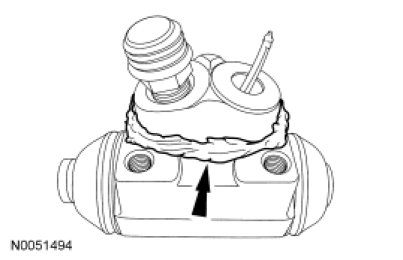 7. NOTE: Prior to installing the wheel cylinder, apply a bead of the specified sealant to the wheel cylinder as shown.