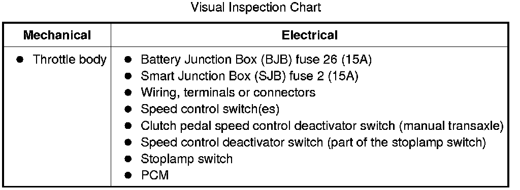 Visual Inspection Chart: