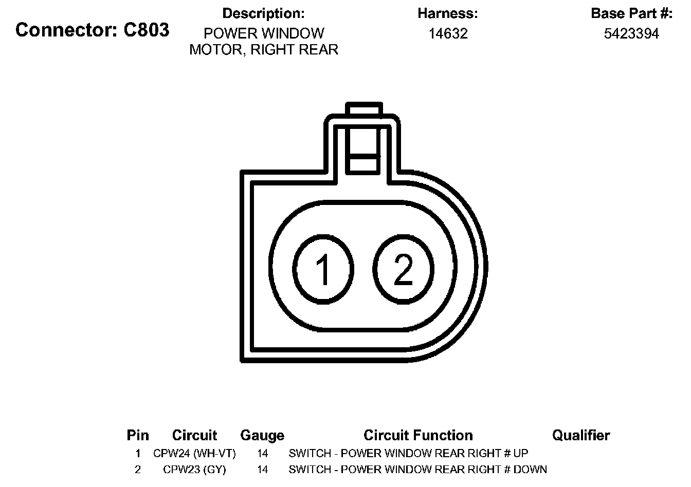Power Window Motor, Right Rear