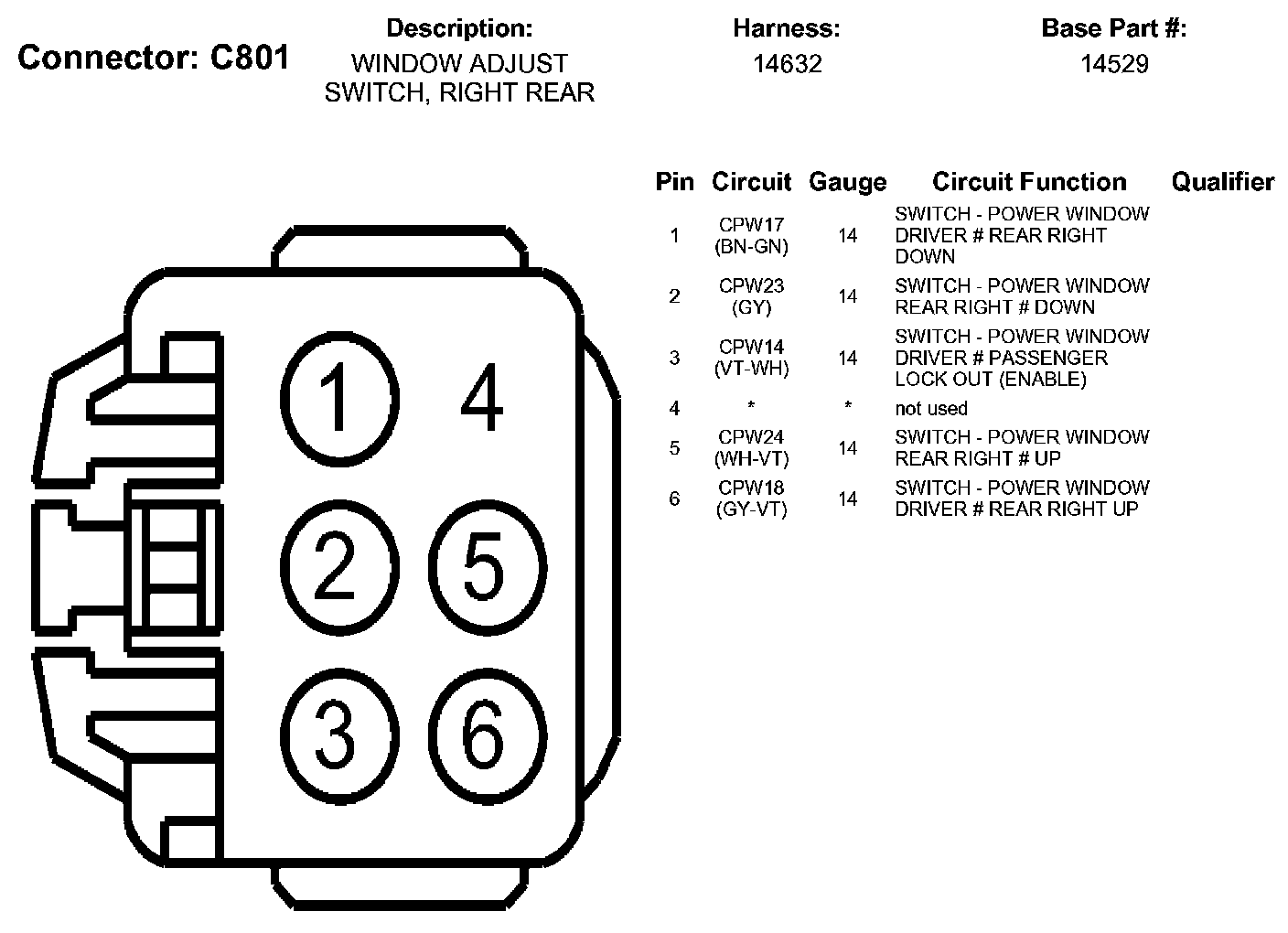 Window Adjust Switch, Right Rear