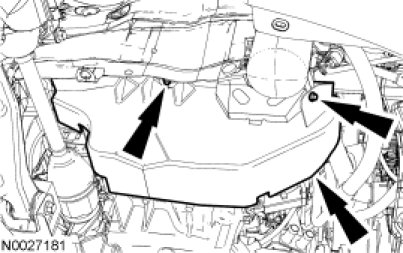 2. Remove the 2 bolts and accessory drive belt splash shield.