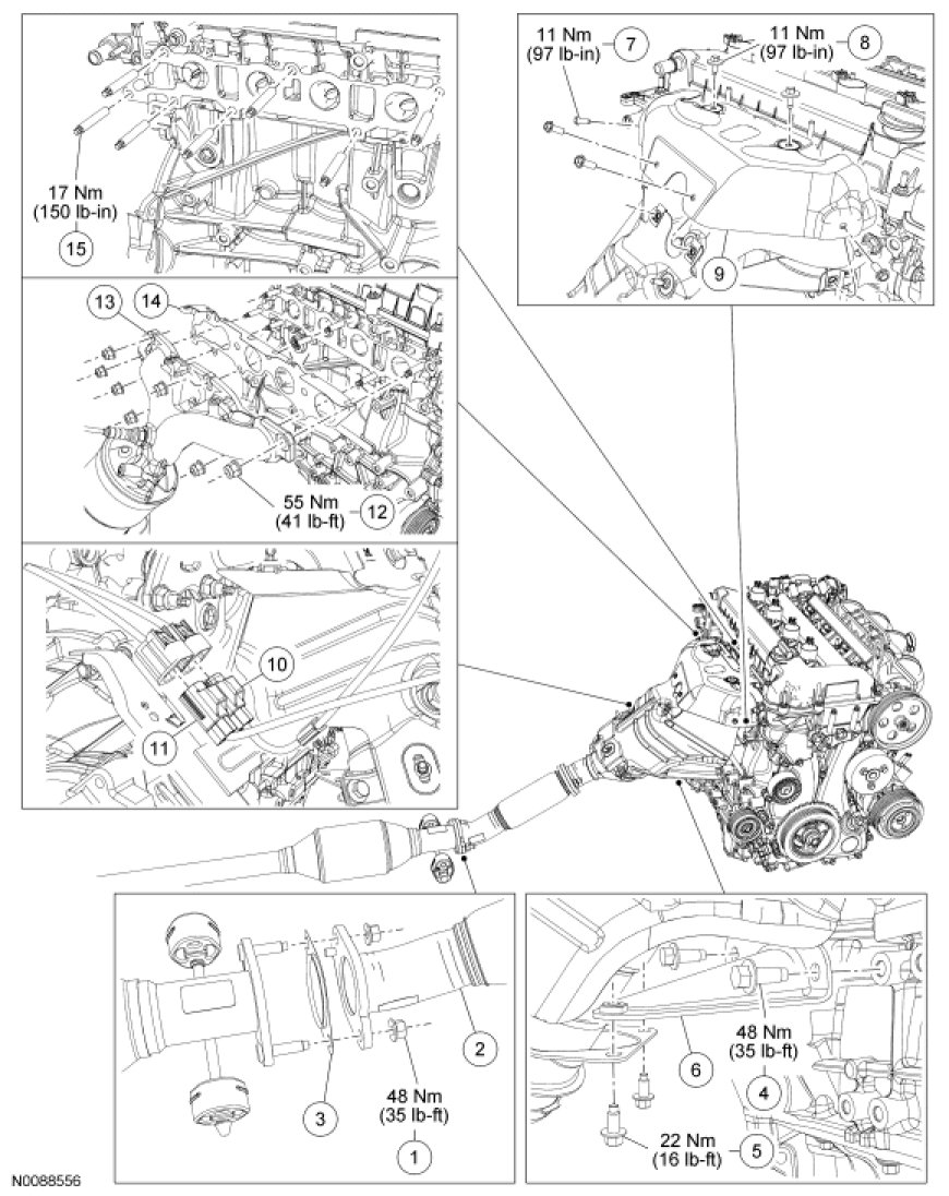 - Tighten to 48 Nm (35 lb-ft).