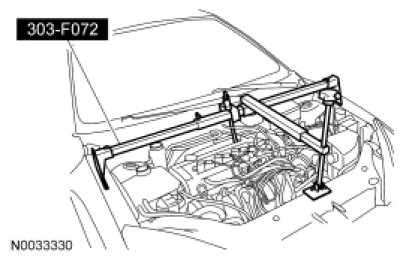 7. Install the Engine Support Bar and raise the engine.