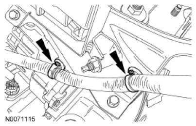 35. Connect the upper radiator hose, the heater hose to the coolant bypass.
