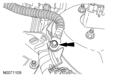 20. Position the Heated Oxygen Sensor (HO2S) and Catalyst Monitor Sensor (CMS) wire connector bracket and install the nut.