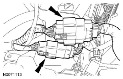 68. Connect and attach the 2 engine harness electrical connectors.