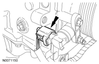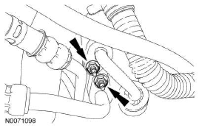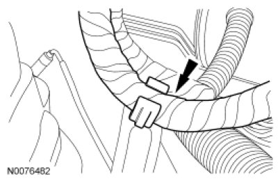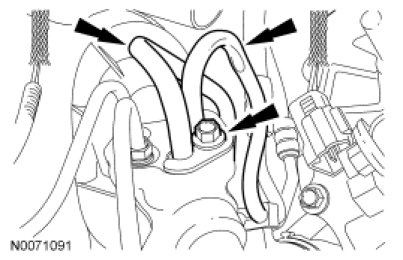 9. Position the 2 power steering tubes and the wiring harness as an assembly on the engine.