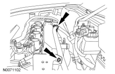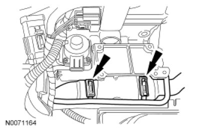 74. Attach the 2 positive battery cable wire harness retainer.