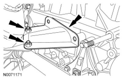 24. Install the engine mount and the 2 bolts and the stud bolt.