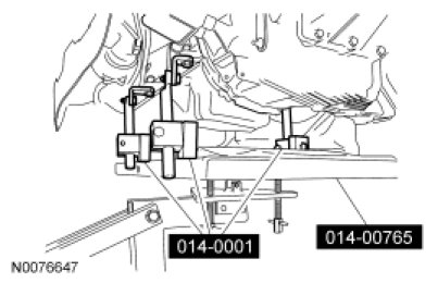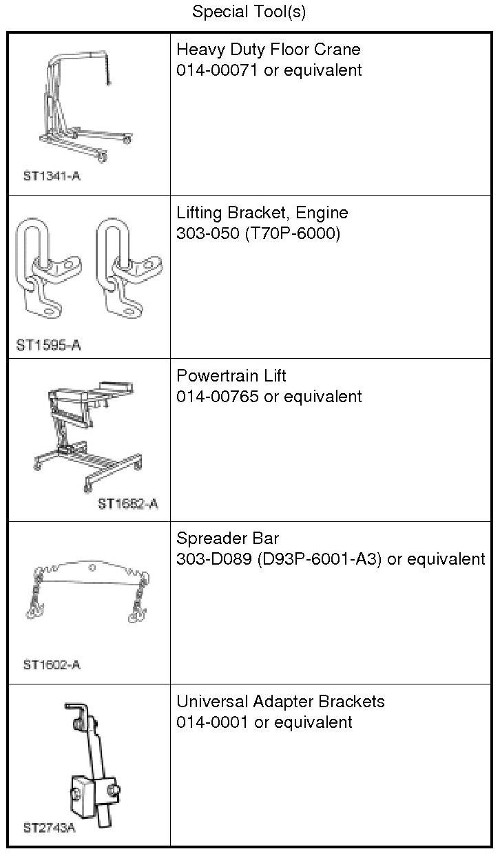 4. Using the Powertrain Lift and Universal Adapter Brackets, secure the engine and transaxle assembly to the lift table.