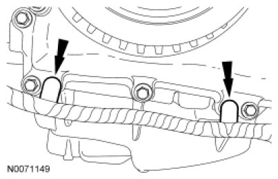 27. Install the 2 lower bellhousing-to-oil pan bolts.