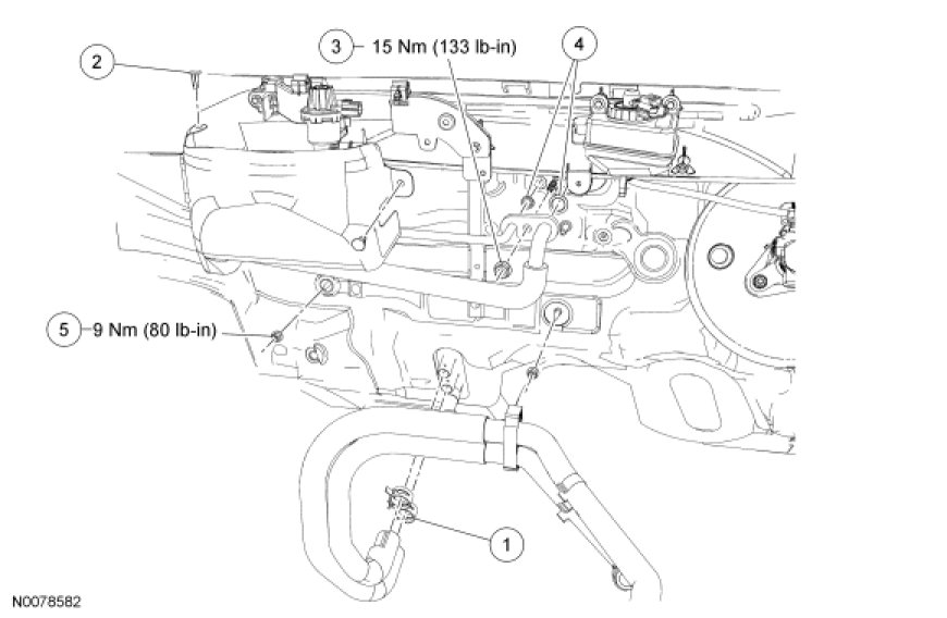 8. Detach the 2 Evaporative Emission (EVAP) canister purge valve heat shield pin-type retainers and remove the shield.