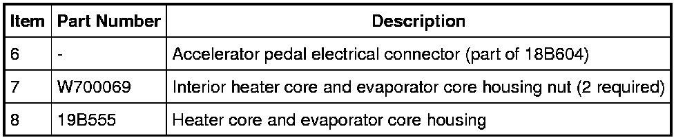 7. Remove the 2 interior heater core and evaporator core housing nuts.