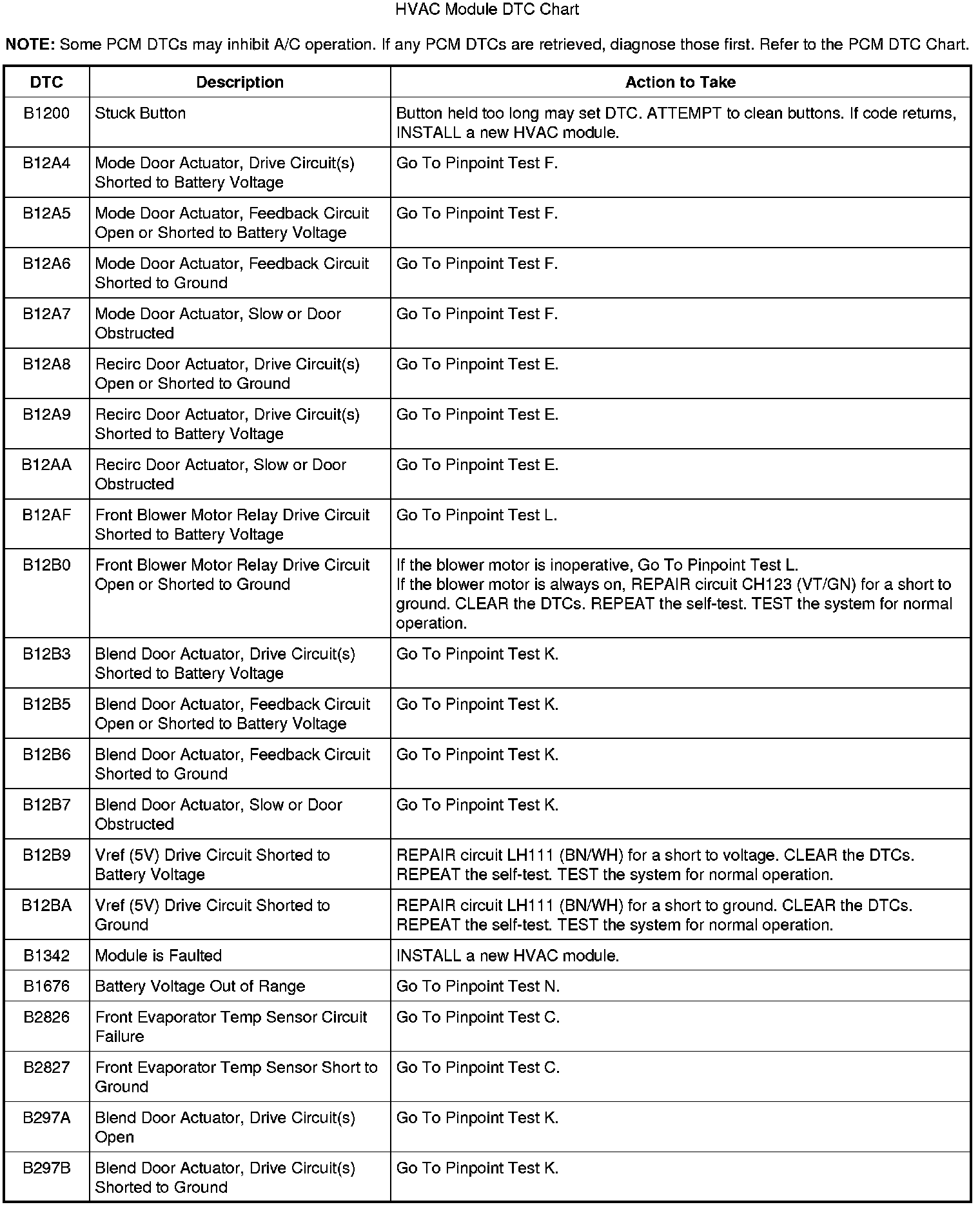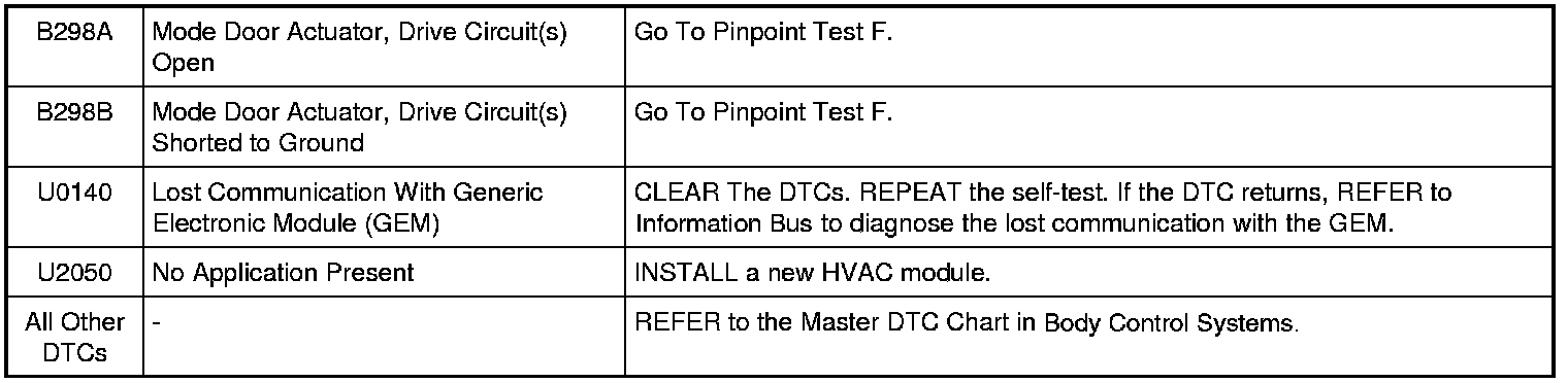 HVAC Module DTC Chart