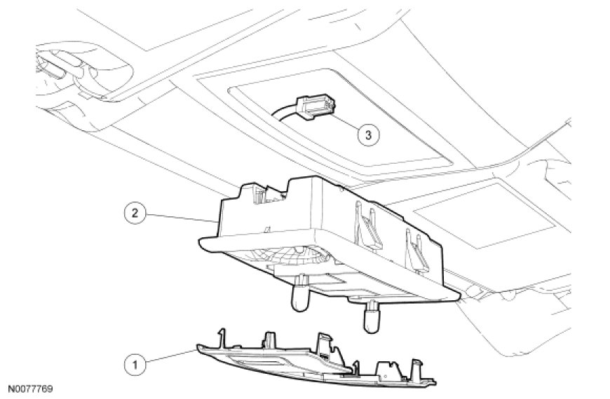 2. Release the 4 retaining clips, and remove the lamp assembly from the headliner.