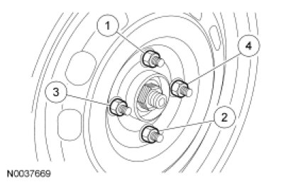 3. NOTICE: Failure to tighten the wheel nuts in the pattern shown may result in wheel or brake rotor damage.
