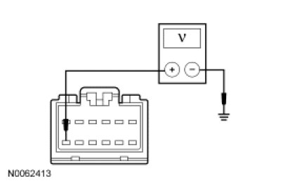 - Measure the voltage between the FDIM C2123-12, circuit SBP39 (WH/RD), harness side and ground.