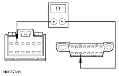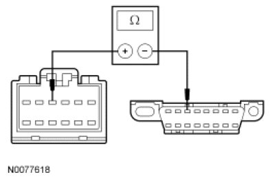 - Measure the resistance between the FDIM C2123-5, circuit VDB07 (VT/OG), harness side and the DLC C251-11, circuit VDB07 (VT/OG), harness side.