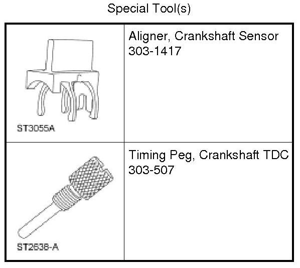 2. Using the Crankshaft Sensor Aligner, adjust the CKP sensor. Tighten the 2 CKP sensor bolts to 7 Nm (62 lb-in).