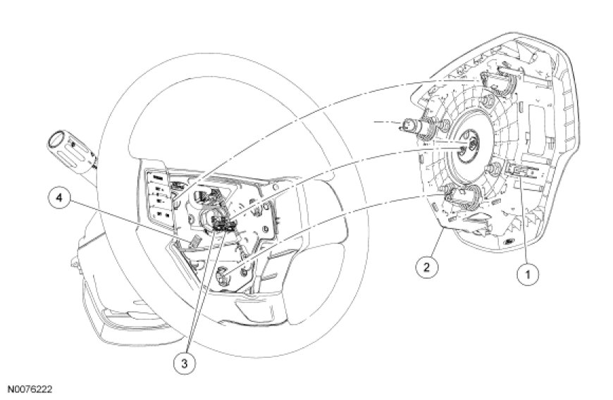 - Firmly press the driver air bag module to engage the 3 driver air bag module wire clips to the steering wheel.