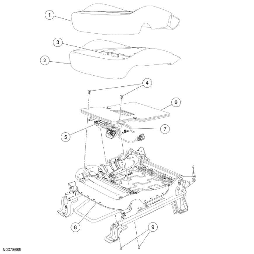 19. WARNING: Install a new occupant classification sensor (OCS) system service kit as a complete assembly. Never install only part of the kit components. Failure to follow this instruction may result in incorrect operation of the OCS system and increases the risk of serious personal injury or death in a crash.