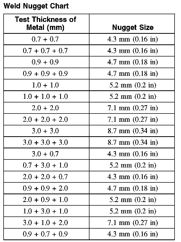 Weld Nugget Chart: