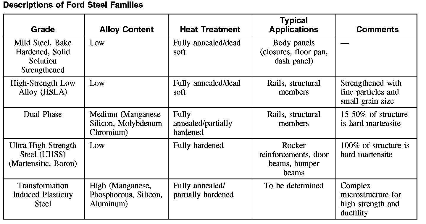 Descriptions Of Ford Steel Families:
