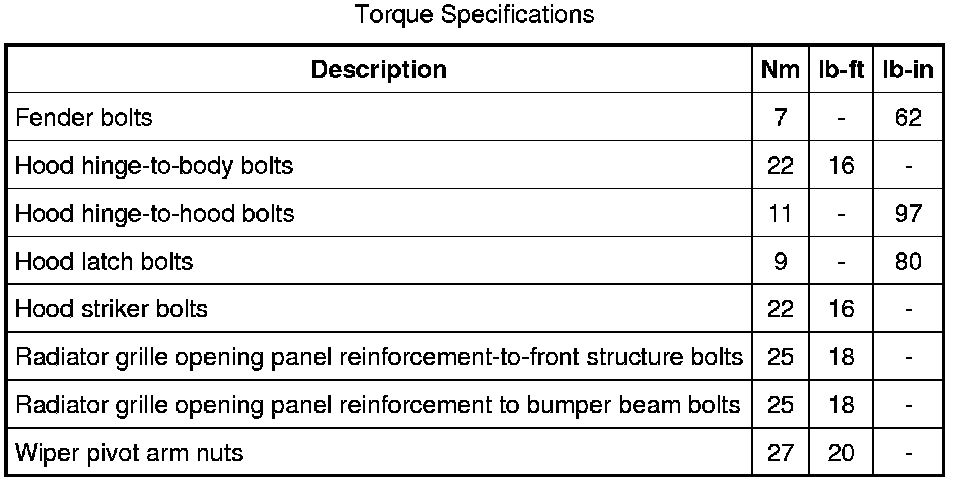 Torque Specifications
