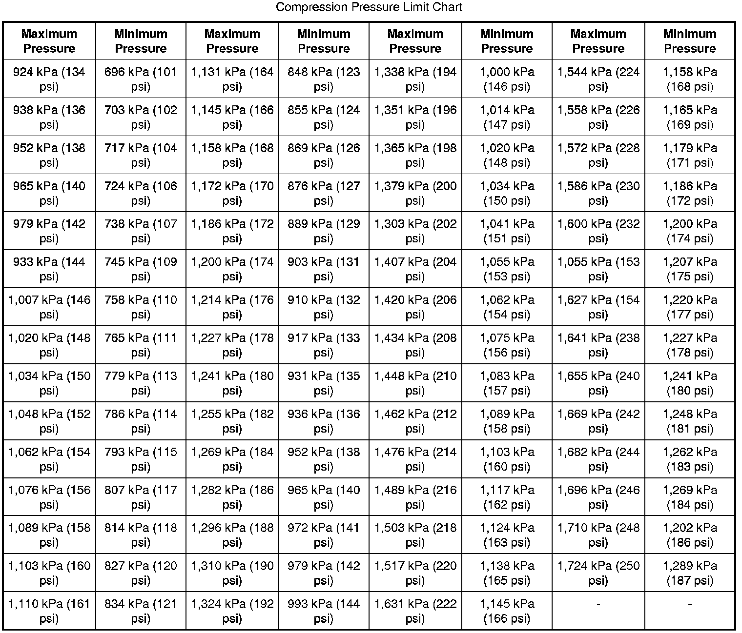 Compression Pressure Limit Chart: