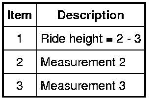 3. Subtract measurement 3 from measurement 2 to obtain the rear ride height.
