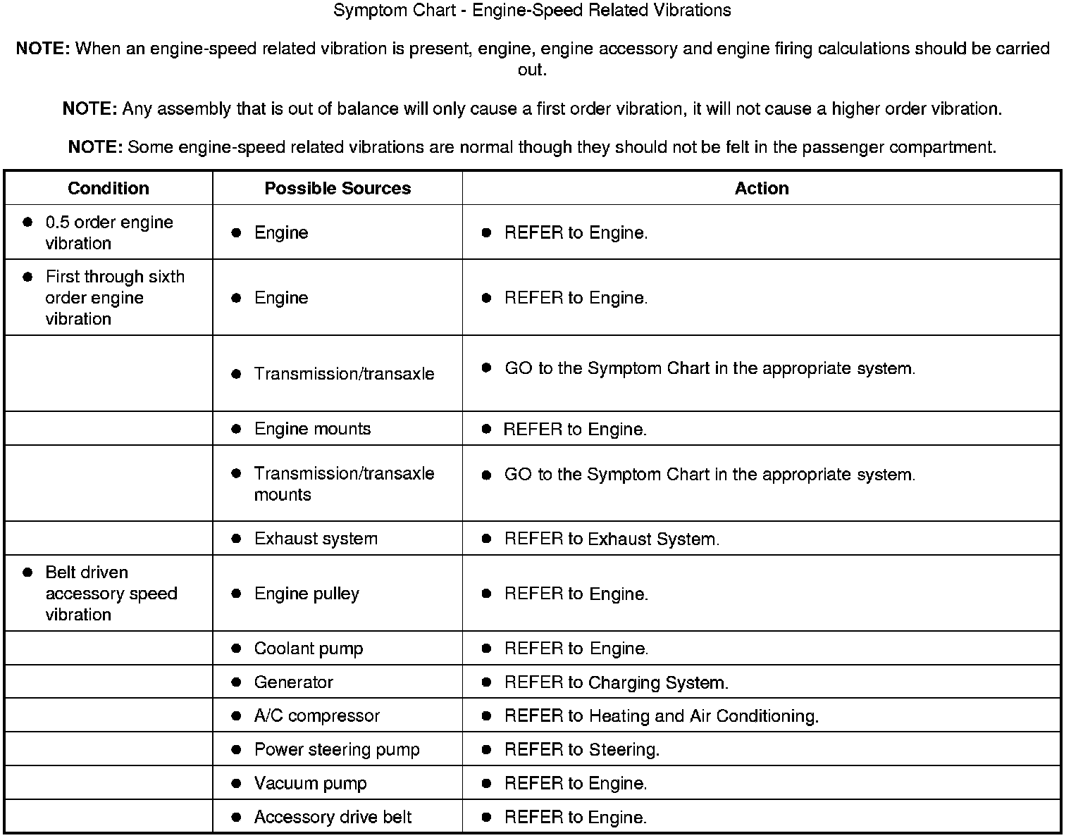 Symptom Chart - Engine-Speed Related Vibrations: