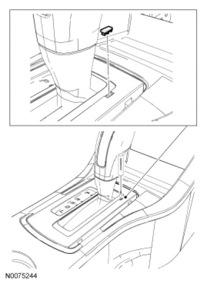 - The cover of the release mechanism must be removed and a suitable tool pressed into the opening until the manual selector lever can be moved out of PARK position.