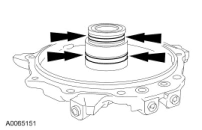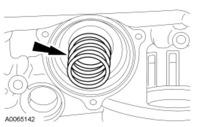 47. NOTICE: The intermediate/Overdrive (O/D) band servo cover plate is spring loaded. The bolts should be removed evenly until plate is unloaded, then remove the bolts. Failure to do so can result in bolt thread damage.