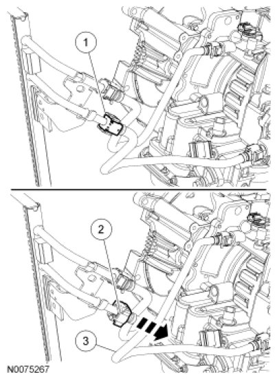 3. Remove the transmission fluid cooler tube from the transmission fluid cooler and position the transmission fluid cooler tube aside.