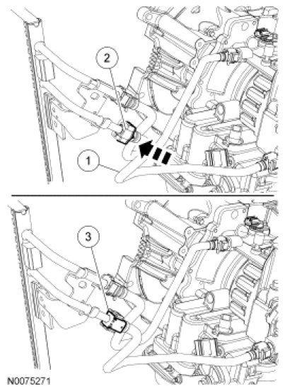 2. Slide the latch into the transmission fluid cooler tube to the locked position.
