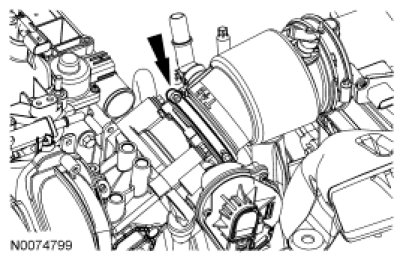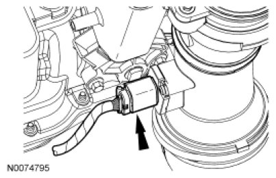 Disconnect the crankcase ventilation hose and disconnect the brake booster vacuum hose.