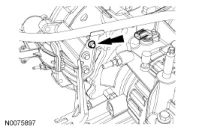 15. Remove the transmission fluid filler tube bolt from the selector lever cable bracket.