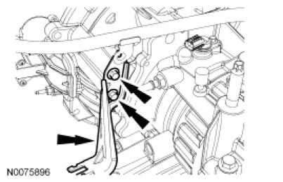 13. Disconnect the selector lever cable from the retainer on the unibody and the selector lever cable retaining bracket on the transaxle.