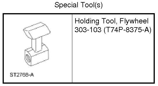 3. Install the Flywheel Holding Tool and remove the 6 bolts and the flywheel.