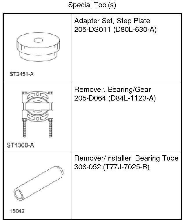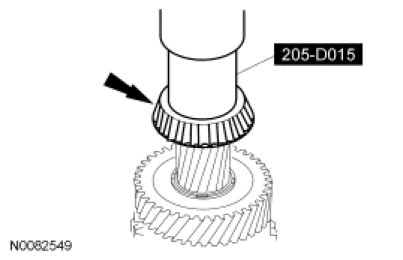 Using a press and the Bearing/Gear Remover, remove the output shaft bearing and the reverse gear. Discard the output shaft bearing.