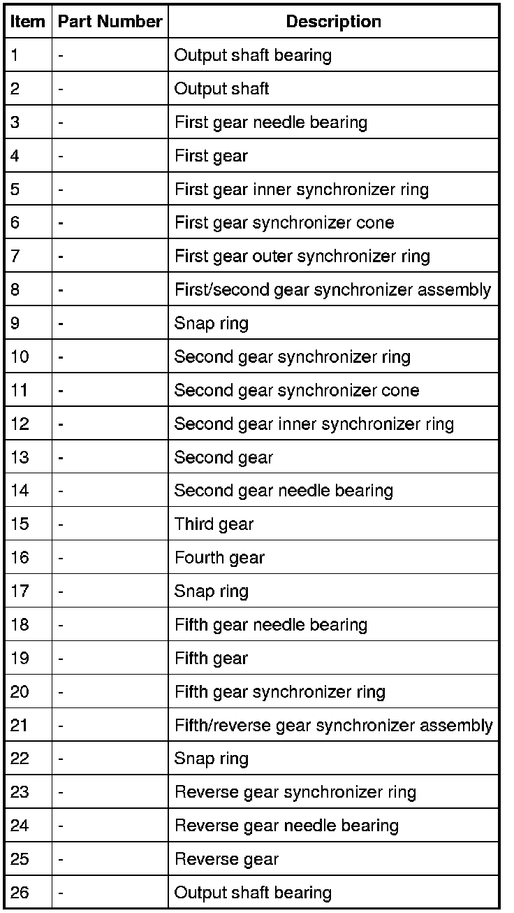 4. Remove the synchronizer ring, 5th gear and 5th gear needle bearing.