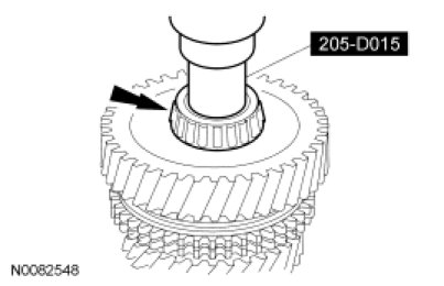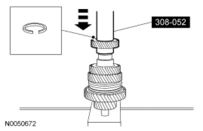 7. Using a press and the Bearing Tube Remover/Installer, install 4th gear. Install a new snap ring.