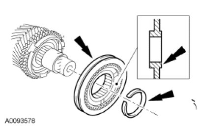 3. Remove and discard the snap ring and the 5th/reverse gear synchronizer assembly.