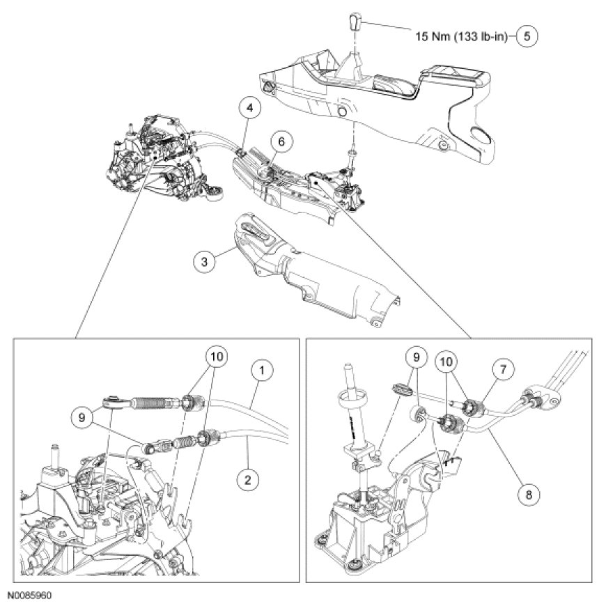 11. Disconnect the gearshift and selector cables from the gearshift lever in the following sequence.