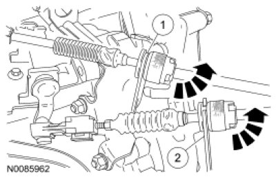 2. Detach the gearshift and selector cables by pushing the abutment collar forward.