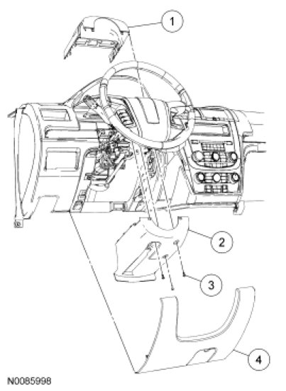 1. NOTE: The steering column opening cover is held in place by tabs that clip to the instrument panel.